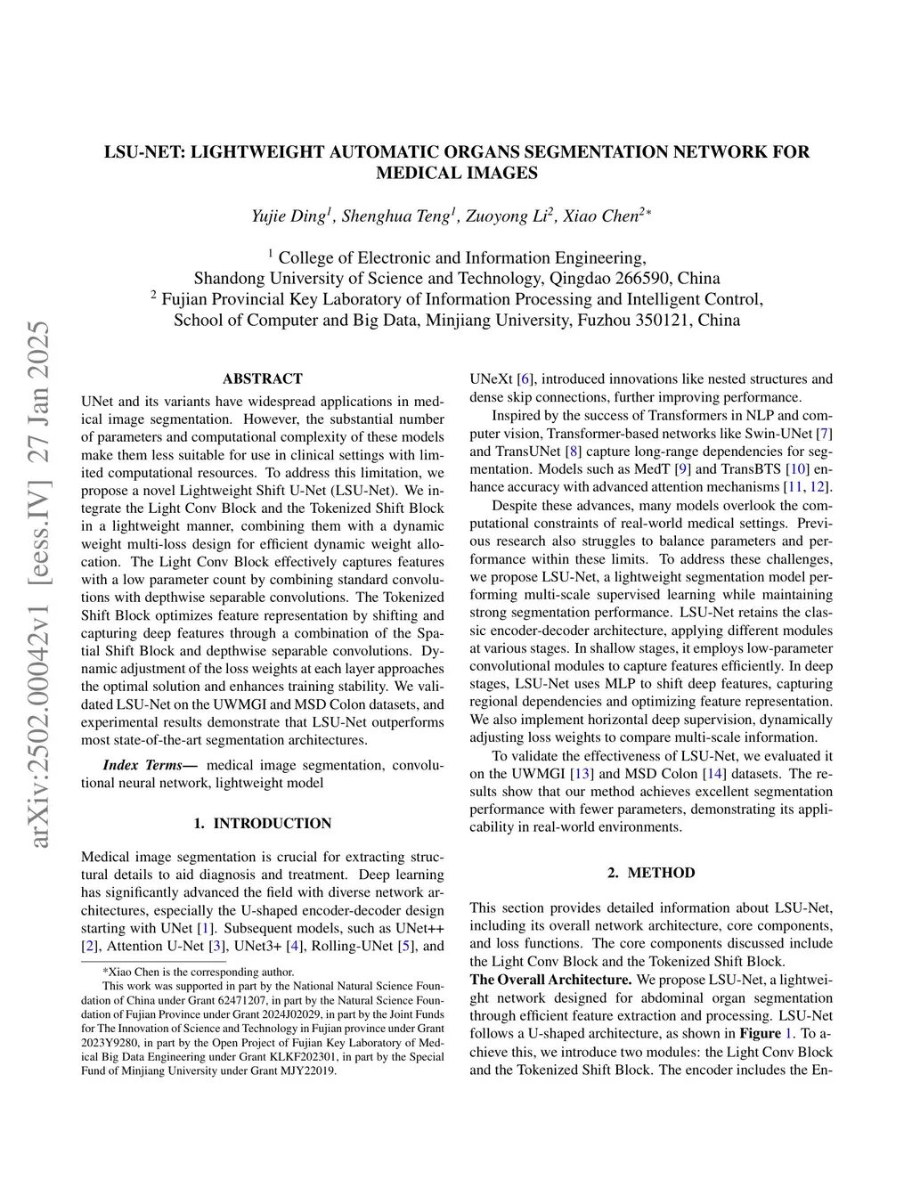 LSU-Net: Lightweight Automatic Organs Segmentation Network For Medical Images