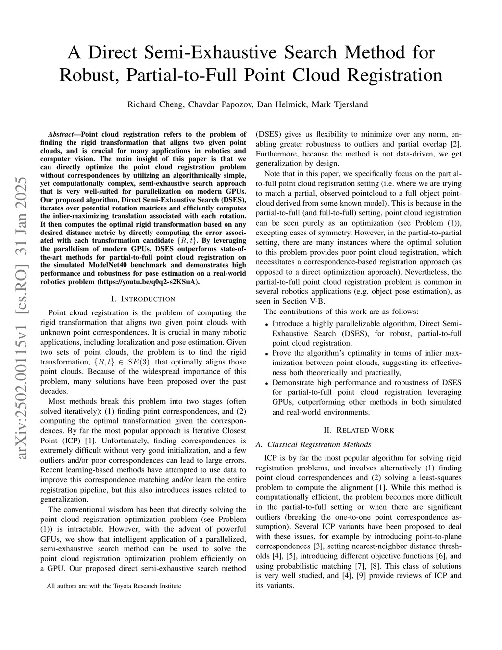 A Direct Semi-Exhaustive Search Method for Robust, Partial-to-Full Point Cloud Registration