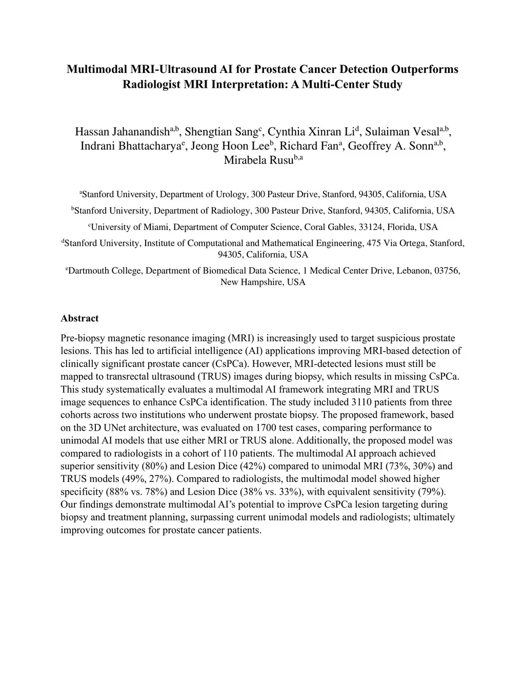 Multimodal MRI-Ultrasound AI for Prostate Cancer Detection Outperforms Radiologist MRI Interpretation: A Multi-Center Study