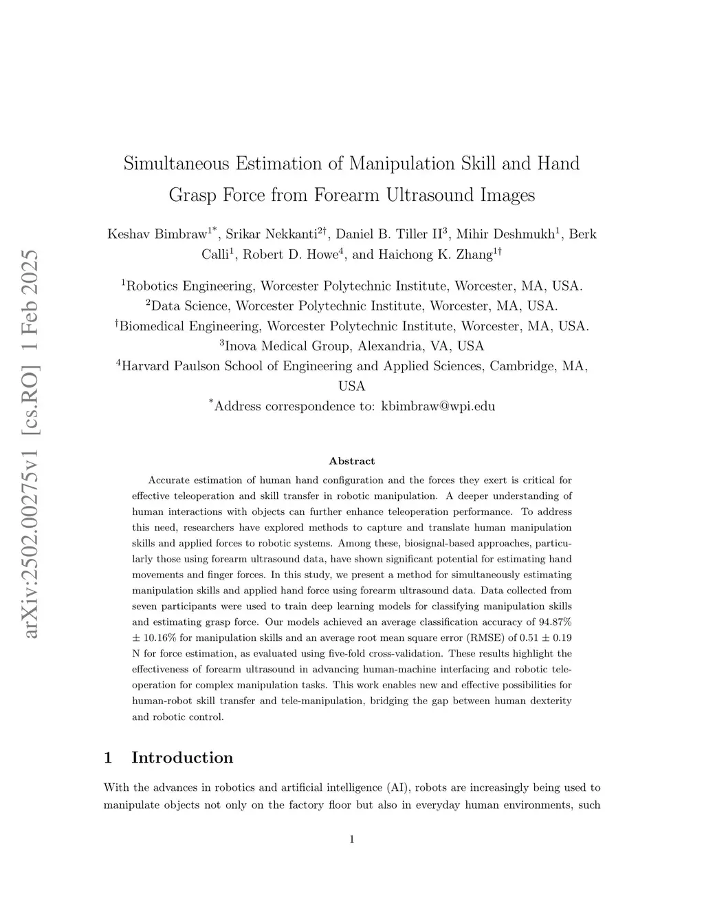 Simultaneous Estimation of Manipulation Skill and Hand Grasp Force from Forearm Ultrasound Images