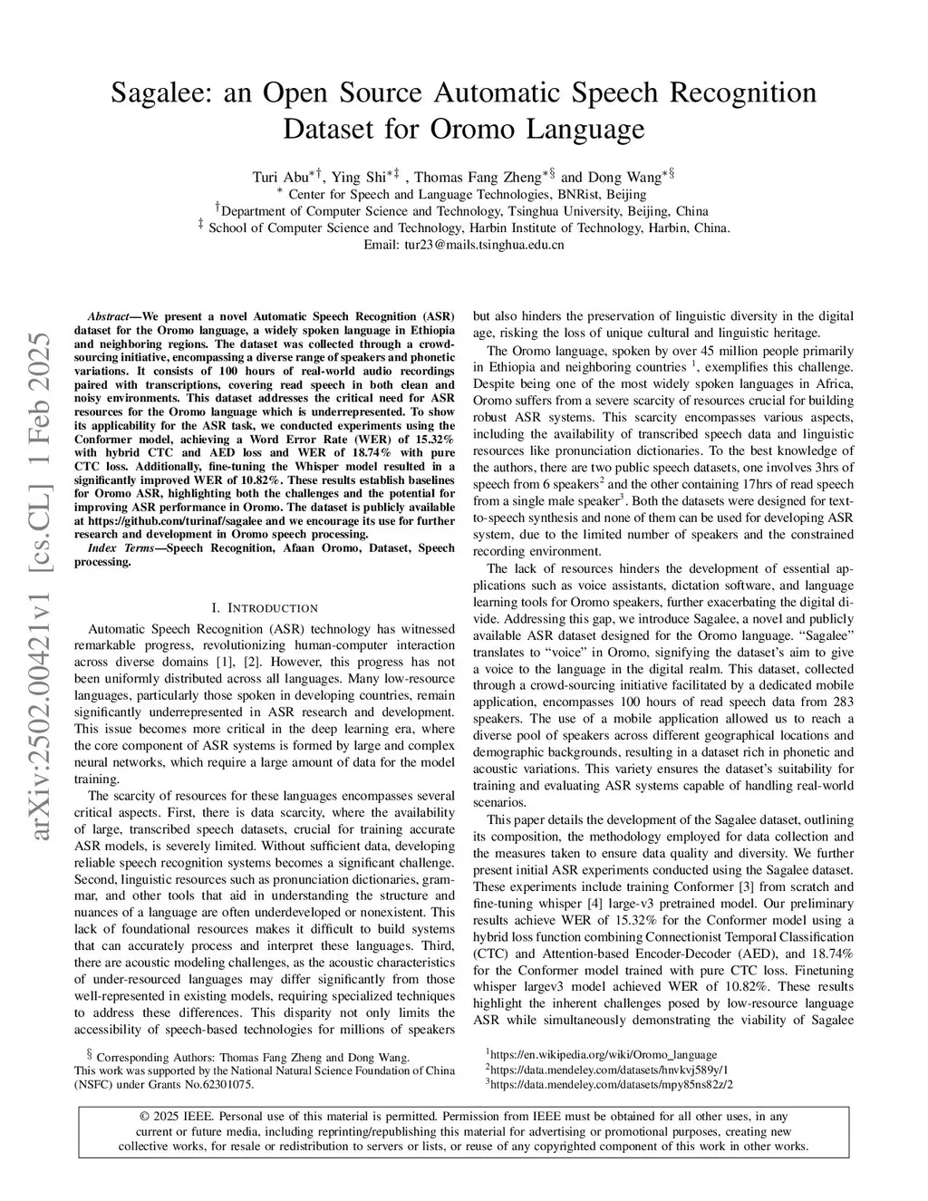 Sagalee: an Open Source Automatic Speech Recognition Dataset for Oromo Language