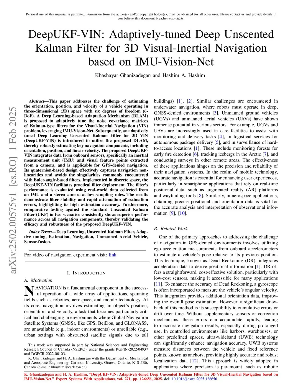 DeepUKF-VIN: Adaptively-tuned Deep Unscented Kalman Filter for 3D Visual-Inertial Navigation based on IMU-Vision-Net