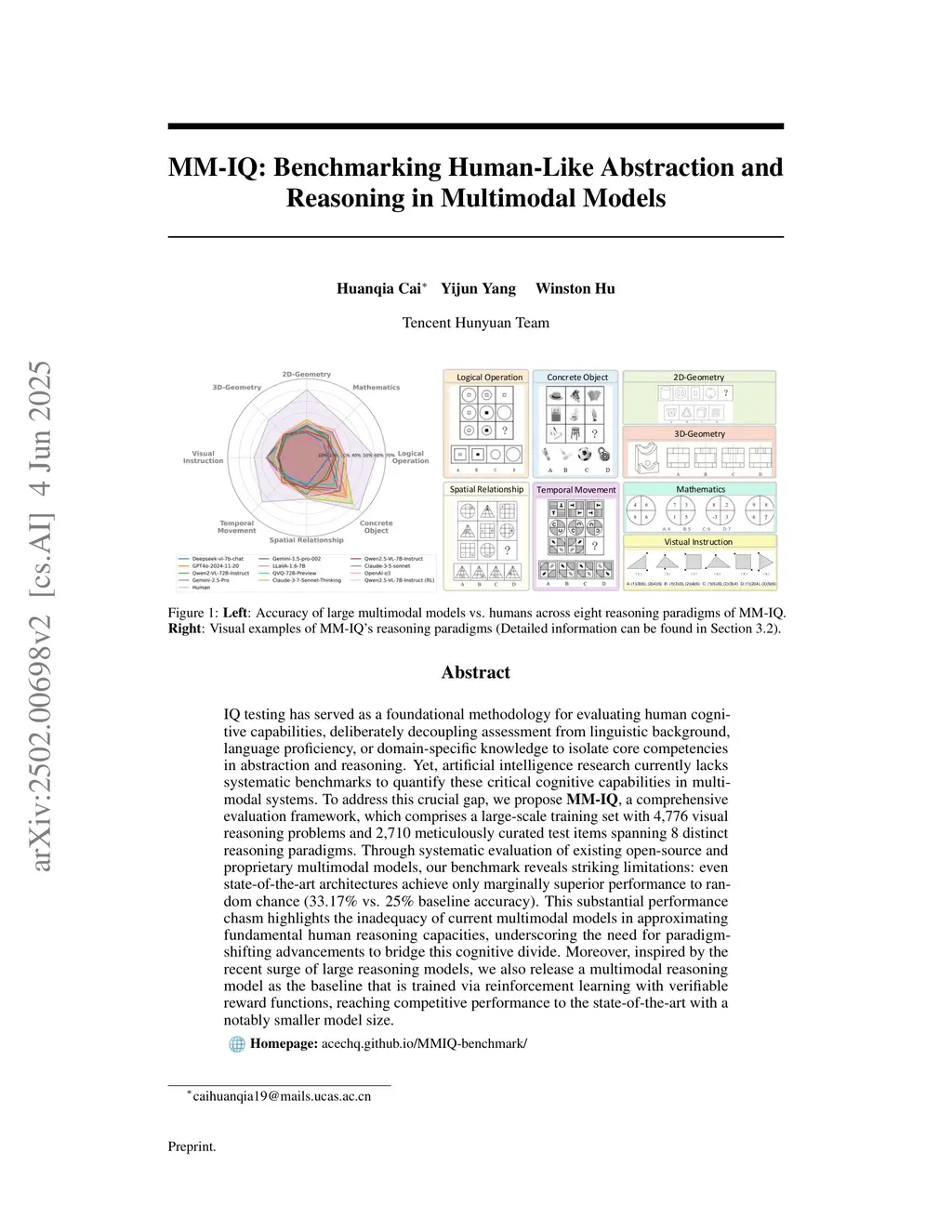 MM-IQ: Benchmarking Human-Like Abstraction and Reasoning in Multimodal Models