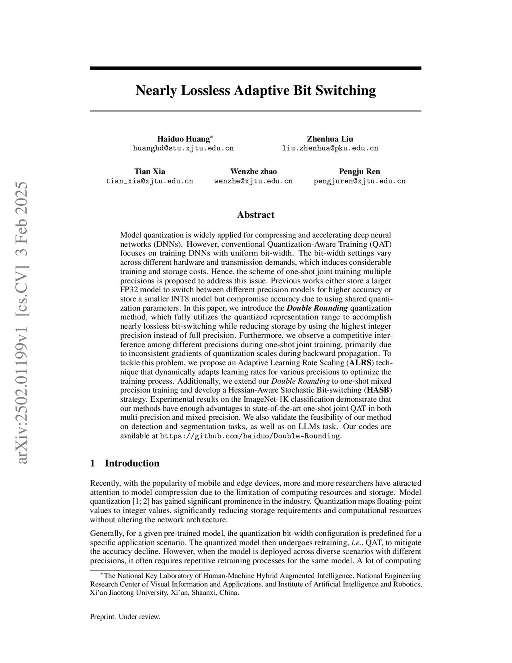 Model quantization is widely applied for compressing and accelerating deep neural networks (DNNs). However, conventional Quantization-Aware Training (QAT) focuses on training DNNs with uniform bit-width. The bit-width settings vary across different hardware and transmission demands, which induces considerable training and storage costs. Hence, the scheme of one-shot joint training multiple precisions is proposed to address this issue. Previous works either store a larger FP32 model to switch between different precision models for higher accuracy or store a smaller INT8 model but compromise accuracy due to using shared quantization parameters. In this paper, we introduce the Double Rounding quantization method, which fully utilizes the quantized representation range to accomplish nearly lossless bit-switching while reducing storage by using the highest integer precision instead of full precision. Furthermore, we observe a competitive interference among different precisions during one-shot joint training, primarily due to inconsistent gradients of quantization scales during backward propagation. To tackle this problem, we propose an Adaptive Learning Rate Scaling (ALRS) technique that dynamically adapts learning rates for various precisions to optimize the training process. Additionally, we extend our Double Rounding to one-shot mixed precision training and develop a Hessian-Aware Stochastic Bit-switching (HASB) strategy. Experimental results on the ImageNet-1K classification demonstrate that our methods have enough advantages to state-of-the-art one-shot joint QAT in both multi-precision and mixed-precision. We also validate the feasibility of our method on detection and segmentation tasks, as well as on LLMs task. Our codes are available atthis https URL.