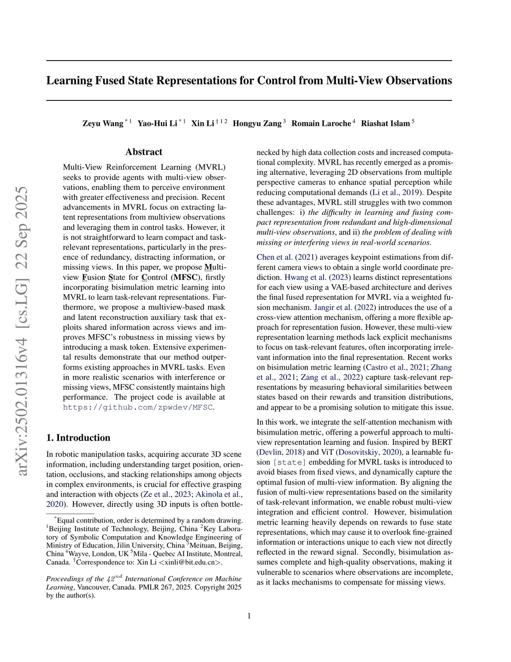 Multi-View Reinforcement Learning (MVRL) seeks to provide agents with multi-view observations, enabling them to perceive environment with greater effectiveness and precision. Recent advancements in MVRL focus on extracting latent representations from multiview observations and leveraging them in control tasks. However, it is not straightforward to learn compact and task-relevant representations, particularly in the presence of redundancy, distracting information, or missing views. In this paper, we propose Multi-view Fusion State for Control (MFSC), firstly incorporating bisimulation metric learning into MVRL to learn task-relevant representations. Furthermore, we propose a multiview-based mask and latent reconstruction auxiliary task that exploits shared information across views and improves MFSC's robustness in missing views by introducing a mask token. Extensive experimental results demonstrate that our method outperforms existing approaches in MVRL tasks. Even in more realistic scenarios with interference or missing views, MFSC consistently maintains high performance.