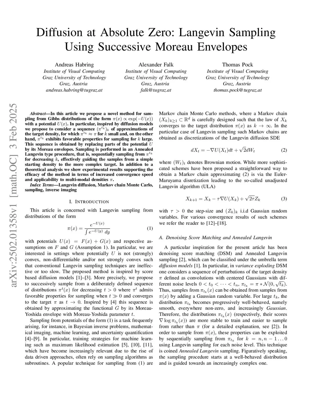 Diffusion at Absolute Zero: Langevin Sampling Using Successive Moreau Envelopes [conference paper]