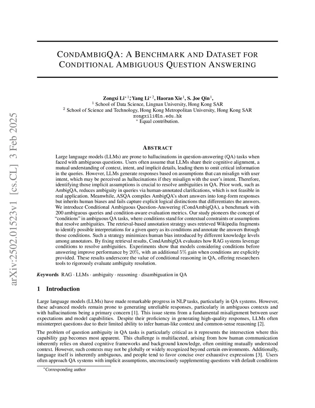 CondAmbigQA: A Benchmark and Dataset for Conditional Ambiguous Question Answering