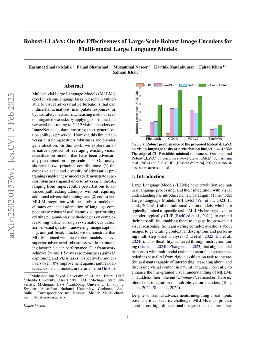 Robust-LLaVA: On the Effectiveness of Large-Scale Robust Image Encoders for Multi-modal Large Language Models