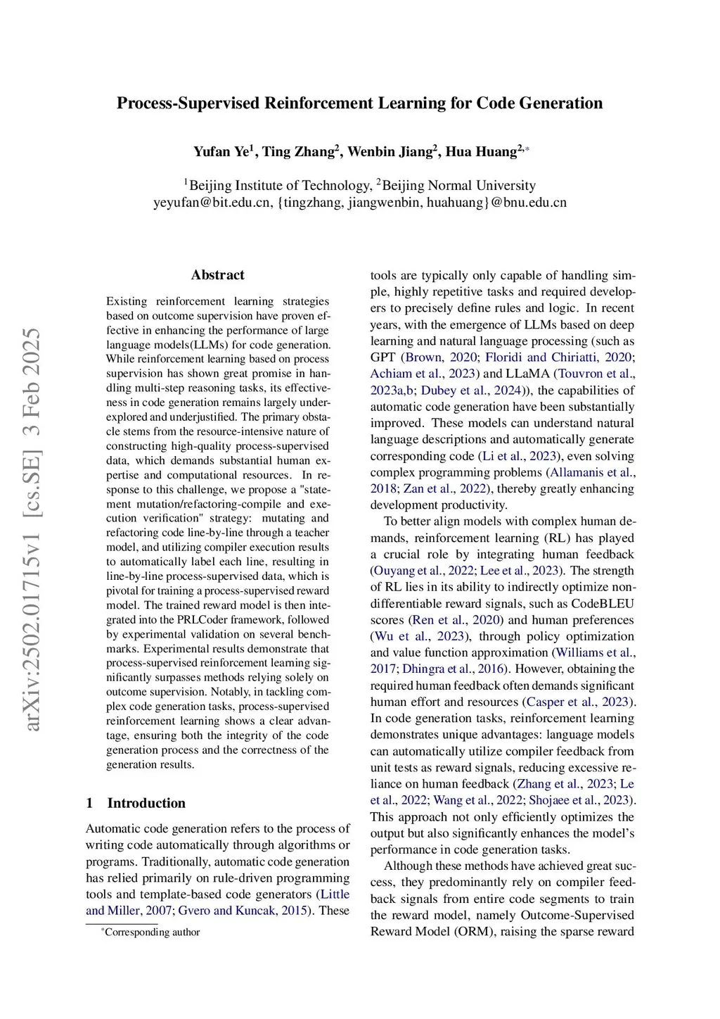 Process-Supervised Reinforcement Learning for Code Generation