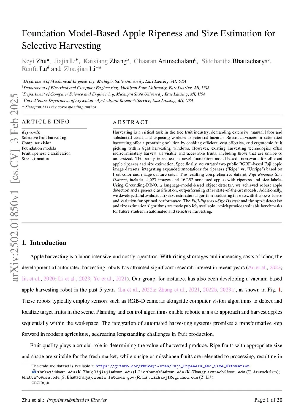 Foundation Model-Based Apple Ripeness and Size Estimation for Selective Harvesting