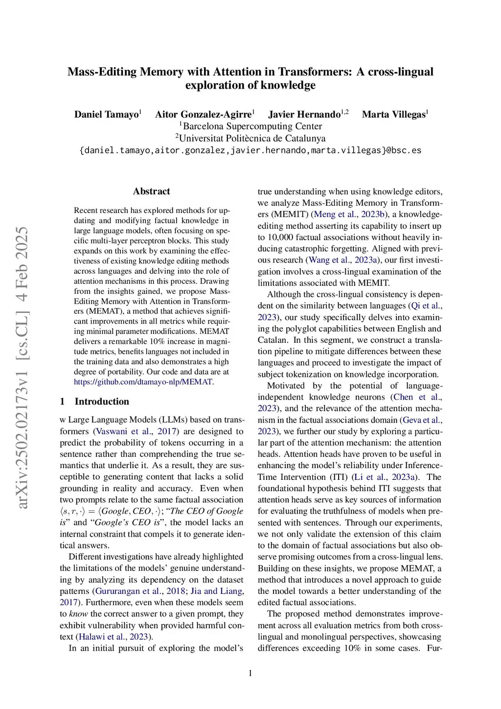 Mass-Editing Memory with Attention in Transformers: A cross-lingual exploration of knowledge