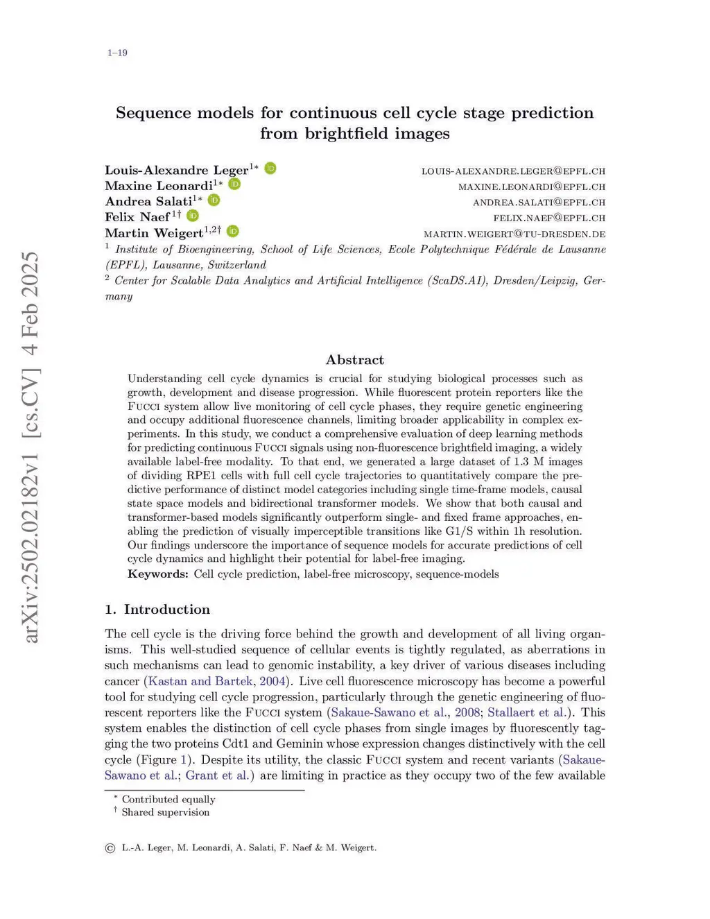 Sequence models for continuous cell cycle stage prediction from brightfield images
