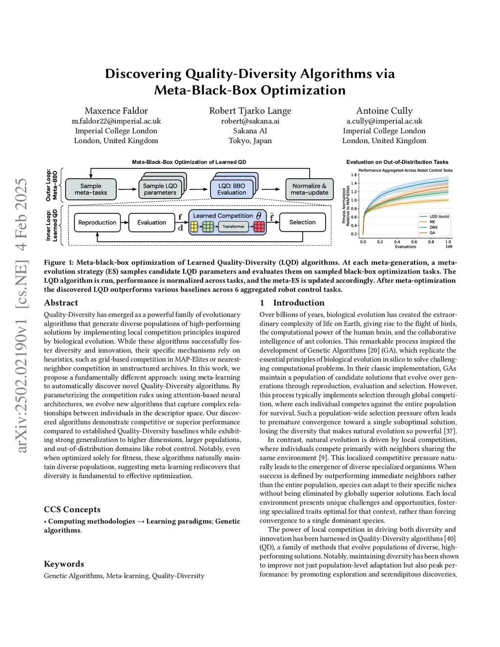 Quality-Diversity has emerged as a powerful family of evolutionary algorithms that generate diverse populations of high-performing solutions by implementing local competition principles inspired by biological evolution. While these algorithms successfully foster diversity and innovation, their specific mechanisms rely on heuristics, such as grid-based competition in MAP-Elites or nearest-neighbor competition in unstructured archives. In this work, we propose a fundamentally different approach: using meta-learning to automatically discover novel Quality-Diversity algorithms. By parameterizing the competition rules using attention-based neural architectures, we evolve new algorithms that capture complex relationships between individuals in the descriptor space. Our discovered algorithms demonstrate competitive or superior performance compared to established Quality-Diversity baselines while exhibiting strong generalization to higher dimensions, larger populations, and out-of-distribution domains like robot control. Notably, even when optimized solely for fitness, these algorithms naturally maintain diverse populations, suggesting meta-learning rediscovers that diversity is fundamental to effective optimization.