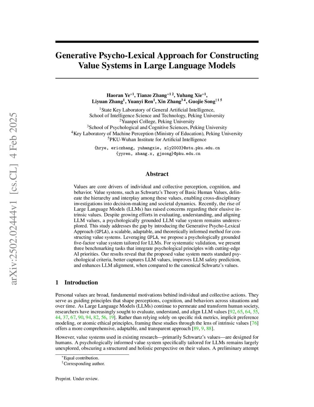 Generative Psycho-Lexical Approach for Constructing Value Systems in Large Language Models