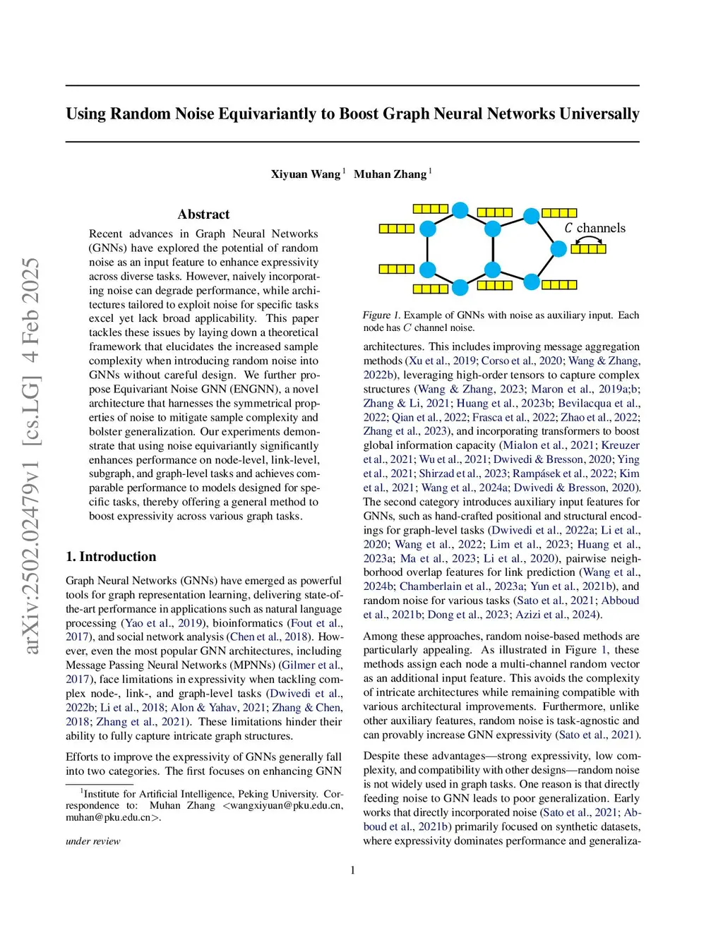 Using Random Noise Equivariantly to Boost Graph Neural Networks Universally