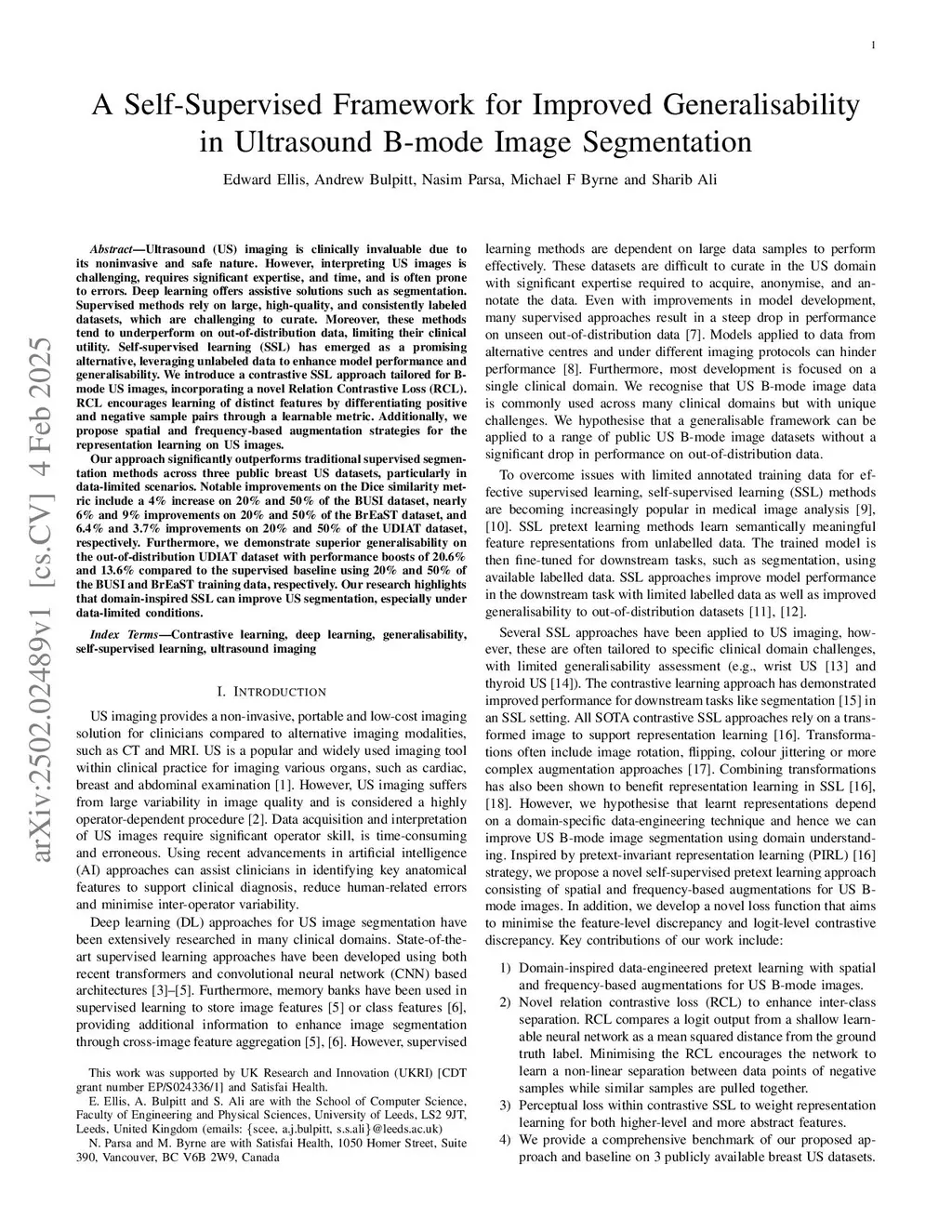 A Self-Supervised Framework for Improved Generalisability in Ultrasound B-mode Image Segmentation