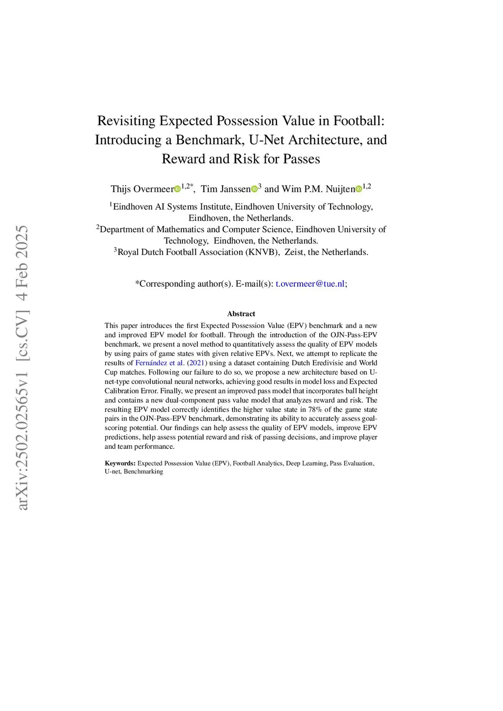 Revisiting Expected Possession Value in Football: Introducing a Benchmark, U-Net Architecture, and Reward and Risk for Passes