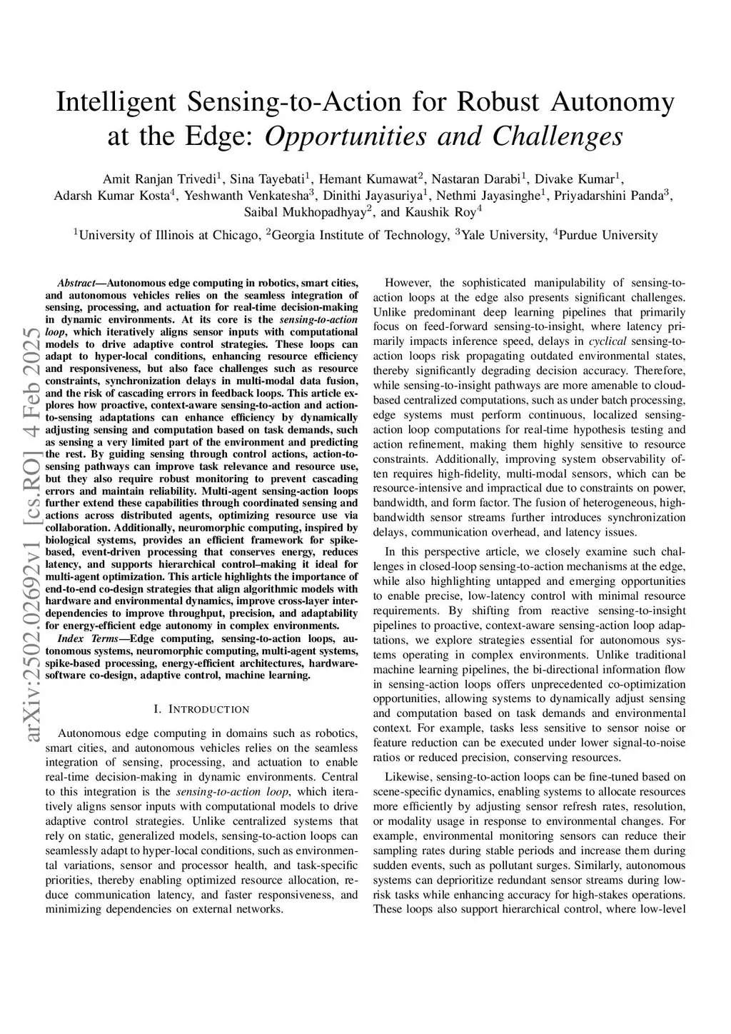 Intelligent Sensing-to-Action for Robust Autonomy at the Edge: Opportunities and Challenges