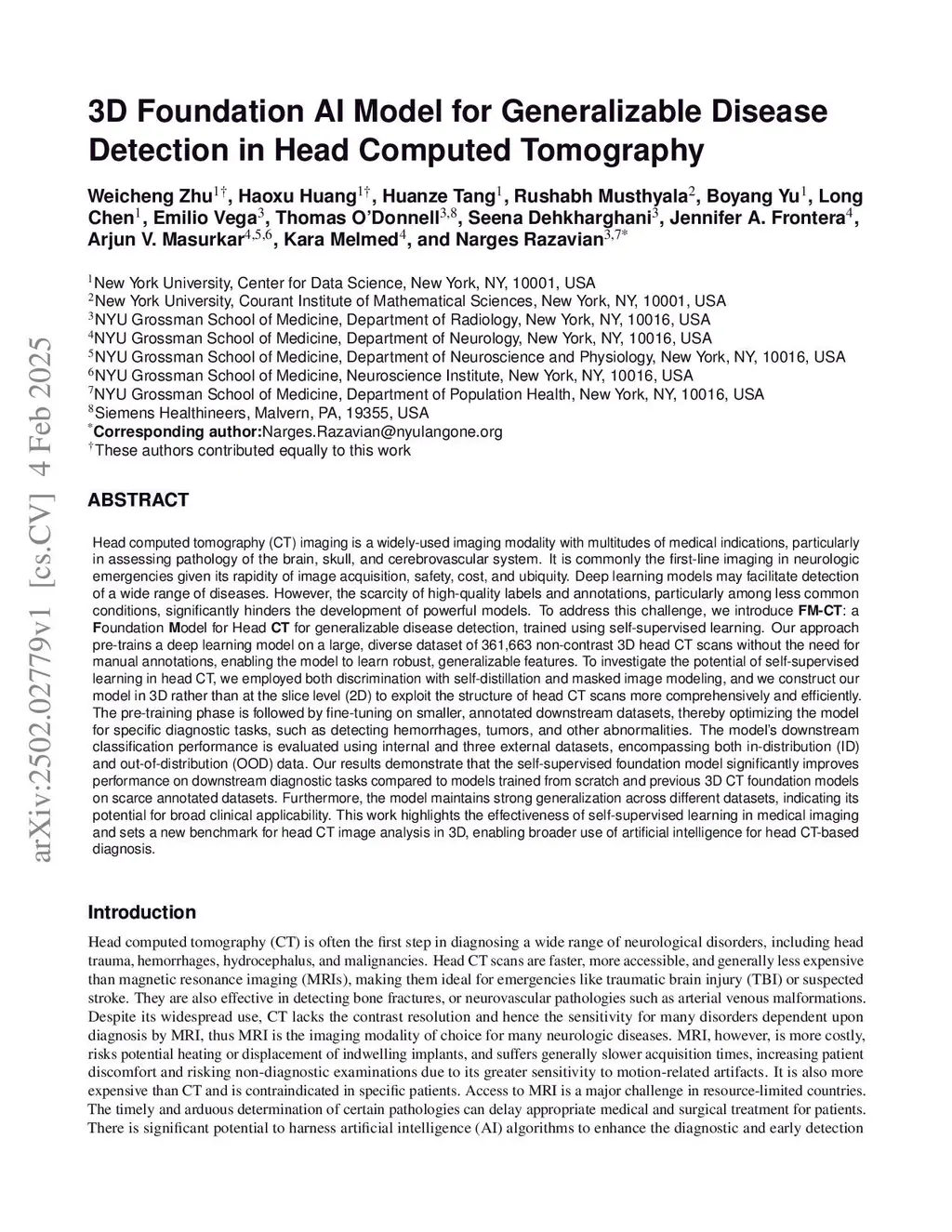 3D Foundation Model for Generalizable Disease Detection in Head Computed Tomography