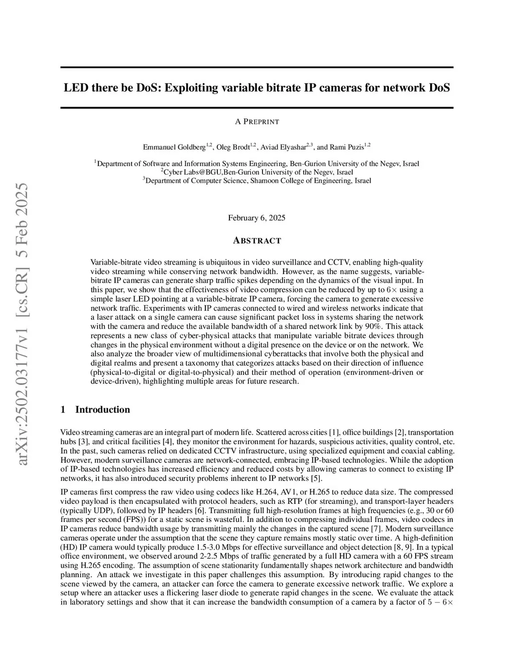 LED there be DoS: Exploiting variable bitrate IP cameras for network DoS