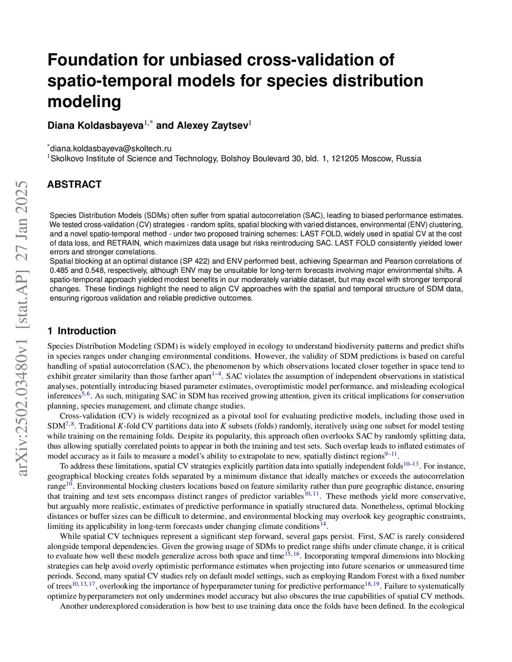 Foundation for unbiased cross-validation of spatio-temporal models for species distribution modeling