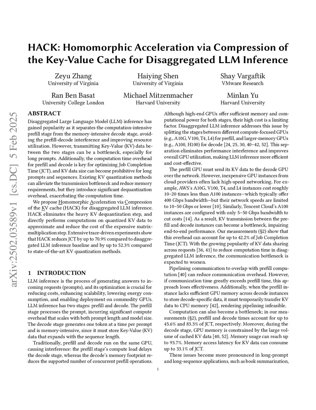 HACK: Homomorphic Acceleration via Compression of the Key-Value Cache for Disaggregated LLM Inference