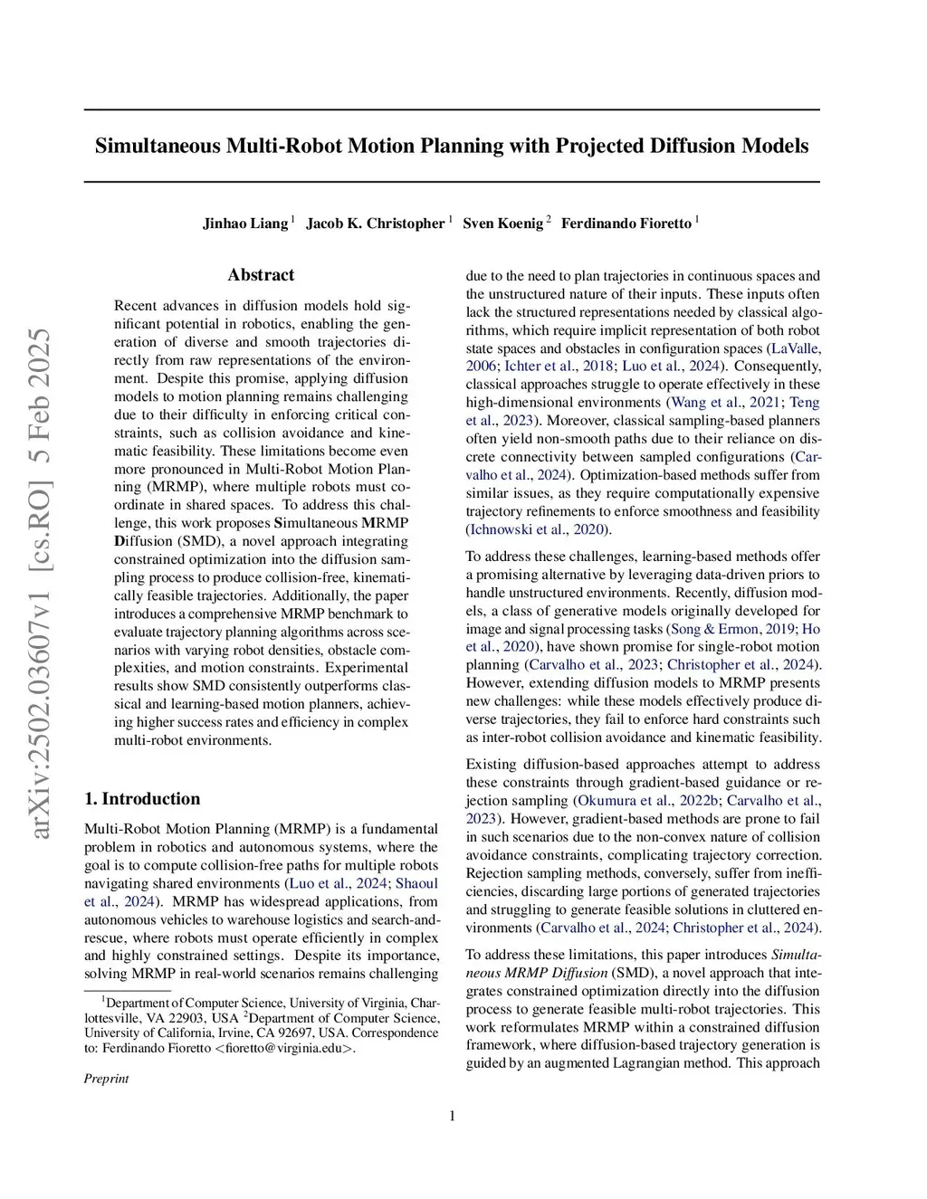 Simultaneous Multi-Robot Motion Planning with Projected Diffusion Models