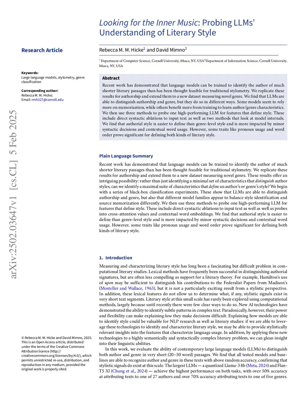 Recent work has demonstrated that language models can be trained to identify the author of much shorter literary passages than has been thought feasible for traditional stylometry. We replicate these results for authorship and extend them to a new dataset measuring novel genre. We find that LLMs are able to distinguish authorship and genre, but they do so in different ways. Some models seem to rely more on memorization, while others benefit more from training to learn author/genre characteristics. We then use three methods to probe one high-performing LLM for features that define style. These include direct syntactic ablations to input text as well as two methods that look at model internals. We find that authorial style is easier to define than genre-level style and is more impacted by minor syntactic decisions and contextual word usage. However, some traits like pronoun usage and word order prove significant for defining both kinds of literary style.