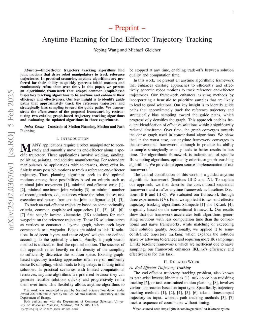 Anytime Planning for End-Effector Trajectory Tracking