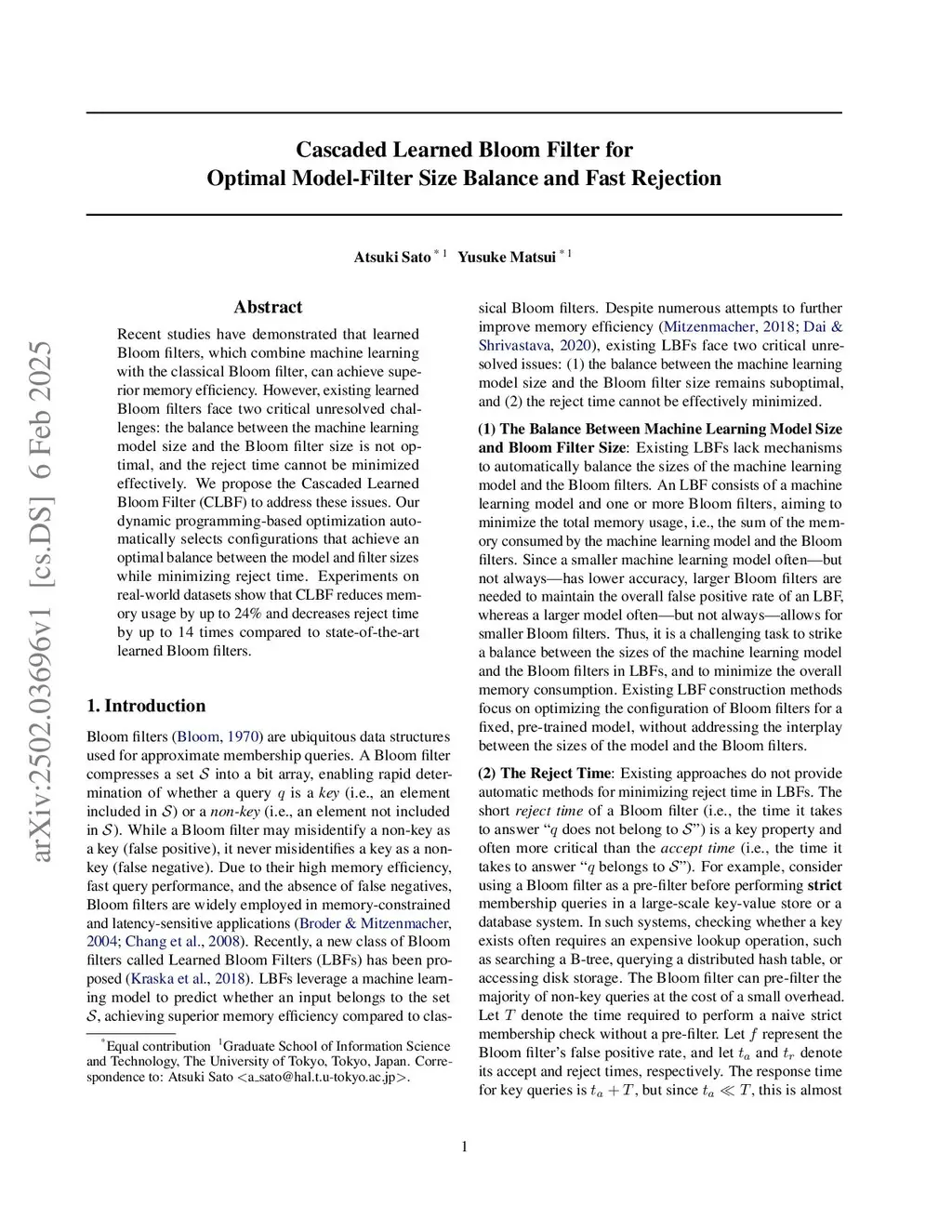 Recent studies have demonstrated that learned Bloom filters, which combine machine learning with the classical Bloom filter, can achieve superior memory efficiency. However, existing learned Bloom filters face two critical unresolved challenges: the balance between the machine learning model size and the Bloom filter size is not optimal, and the reject time cannot be minimized effectively. We propose the Cascaded Learned Bloom Filter (CLBF) to address these issues. Our dynamic programming-based optimization automatically selects configurations that achieve an optimal balance between the model and filter sizes while minimizing reject time. Experiments on real-world datasets show that CLBF reduces memory usage by up to 24% and decreases reject time by up to 14 times compared to state-of-the-art learned Bloom filters.