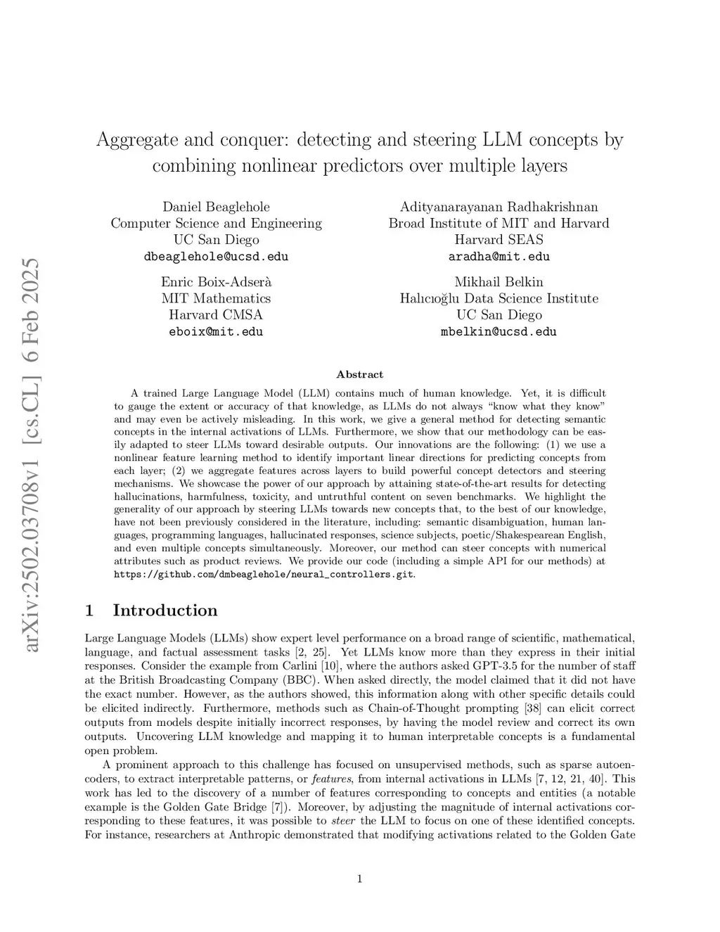 Toward universal steering and monitoring of AI models