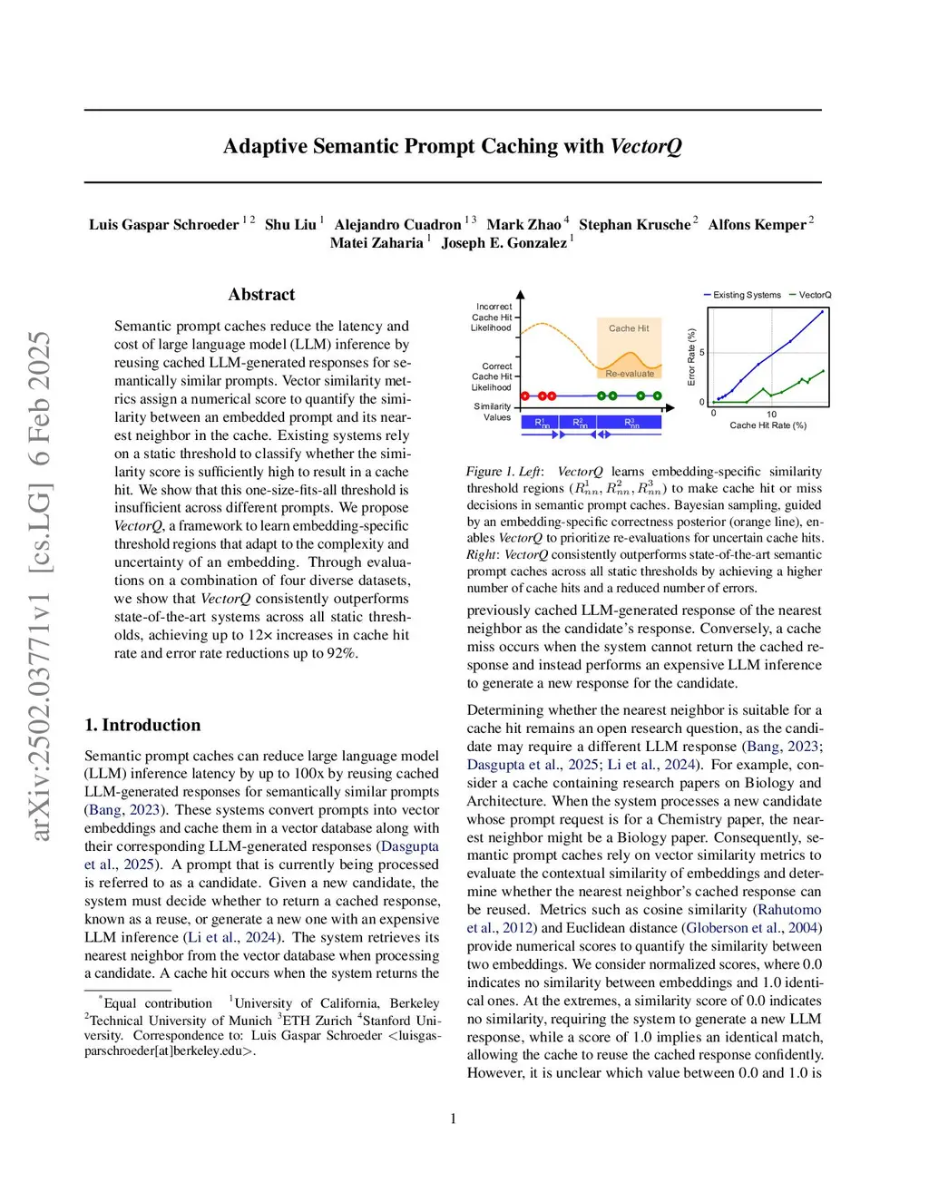Semantic caches return cached responses for semantically similar prompts to reduce LLM inference latency and cost. They embed cached prompts and store them alongside their response in a vector database. Embedding similarity metrics assign a numerical score to quantify the similarity between a request and its nearest neighbor prompt from the cache. Existing systems use the same static similarity threshold across all requests to determine whether two prompts can share similar responses. However, we observe that static thresholds do not give formal correctness guarantees, result in unexpected error rates, and lead to suboptimal cache hit rates. This paper proposes vCache, the first verified semantic cache with user-defined error rate guarantees for predictable performance. It employs an online learning algorithm to estimate an optimal threshold for each cached prompt, enabling reliable cache responses without additional training. Our experiments show that vCache consistently meets the specified error bounds while outperforming state-of-the-art static-threshold and fine-tuned embedding baselines with up to 12.5 higher cache hit and 26 lower error rates. We release the vCache implementation and four benchmarks to support future research.