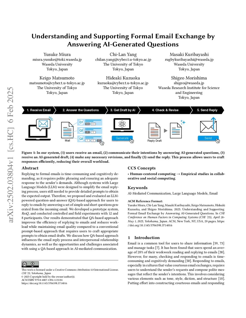 Understanding and Supporting Formal Email Exchange by Answering AI-Generated Questions