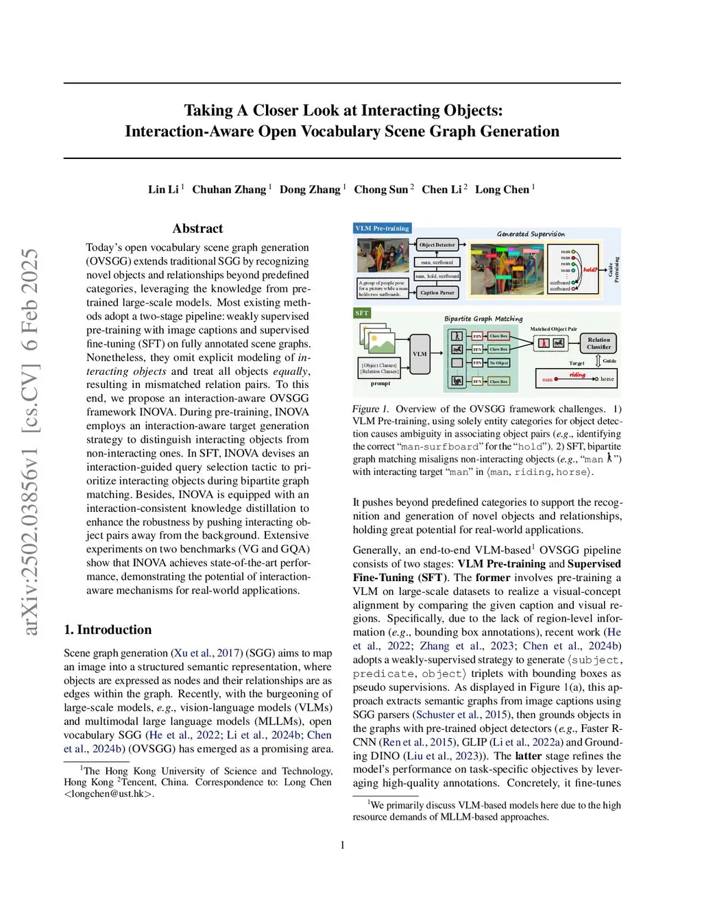 Today's open vocabulary scene graph generation (OVSGG) extends traditional SGG by recognizing novel objects and relationships beyond predefined categories, leveraging the knowledge from pre-trained large-scale models. Most existing methods adopt a two-stage pipeline: weakly supervised pre-training with image captions and supervised fine-tuning (SFT) on fully annotated scene graphs. Nonetheless, they omit explicit modeling of interacting objects and treat all objects equally, resulting in mismatched relation pairs. To this end, we propose an interaction-aware OVSGG framework INOVA. During pre-training, INOVA employs an interaction-aware target generation strategy to distinguish interacting objects from non-interacting ones. In SFT, INOVA devises an interaction-guided query selection tactic to prioritize interacting objects during bipartite graph matching. Besides, INOVA is equipped with an interaction-consistent knowledge distillation to enhance the robustness by pushing interacting object pairs away from the background. Extensive experiments on two benchmarks (VG and GQA) show that INOVA achieves state-of-the-art performance, demonstrating the potential of interaction-aware mechanisms for real-world applications.