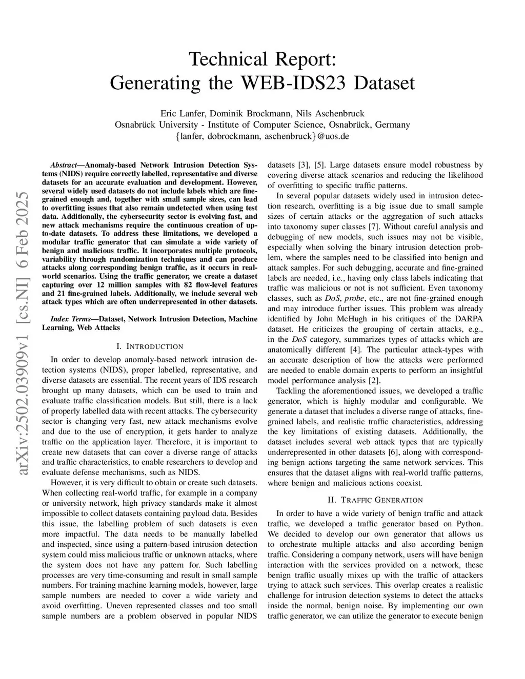 Anomaly-based Network Intrusion Detection Systems (NIDS) require correctly labelled, representative and diverse datasets for an accurate evaluation and development. However, several widely used datasets do not include labels which are fine-grained enough and, together with small sample sizes, can lead to overfitting issues that also remain undetected when using test data. Additionally, the cybersecurity sector is evolving fast, and new attack mechanisms require the continuous creation of up-to-date datasets. To address these limitations, we developed a modular traffic generator that can simulate a wide variety of benign and malicious traffic. It incorporates multiple protocols, variability through randomization techniques and can produce attacks along corresponding benign traffic, as it occurs in real-world scenarios. Using the traffic generator, we create a dataset capturing over 12 million samples with 82 flow-level features and 21 fine-grained labels. Additionally, we include several web attack types which are often underrepresented in other datasets.