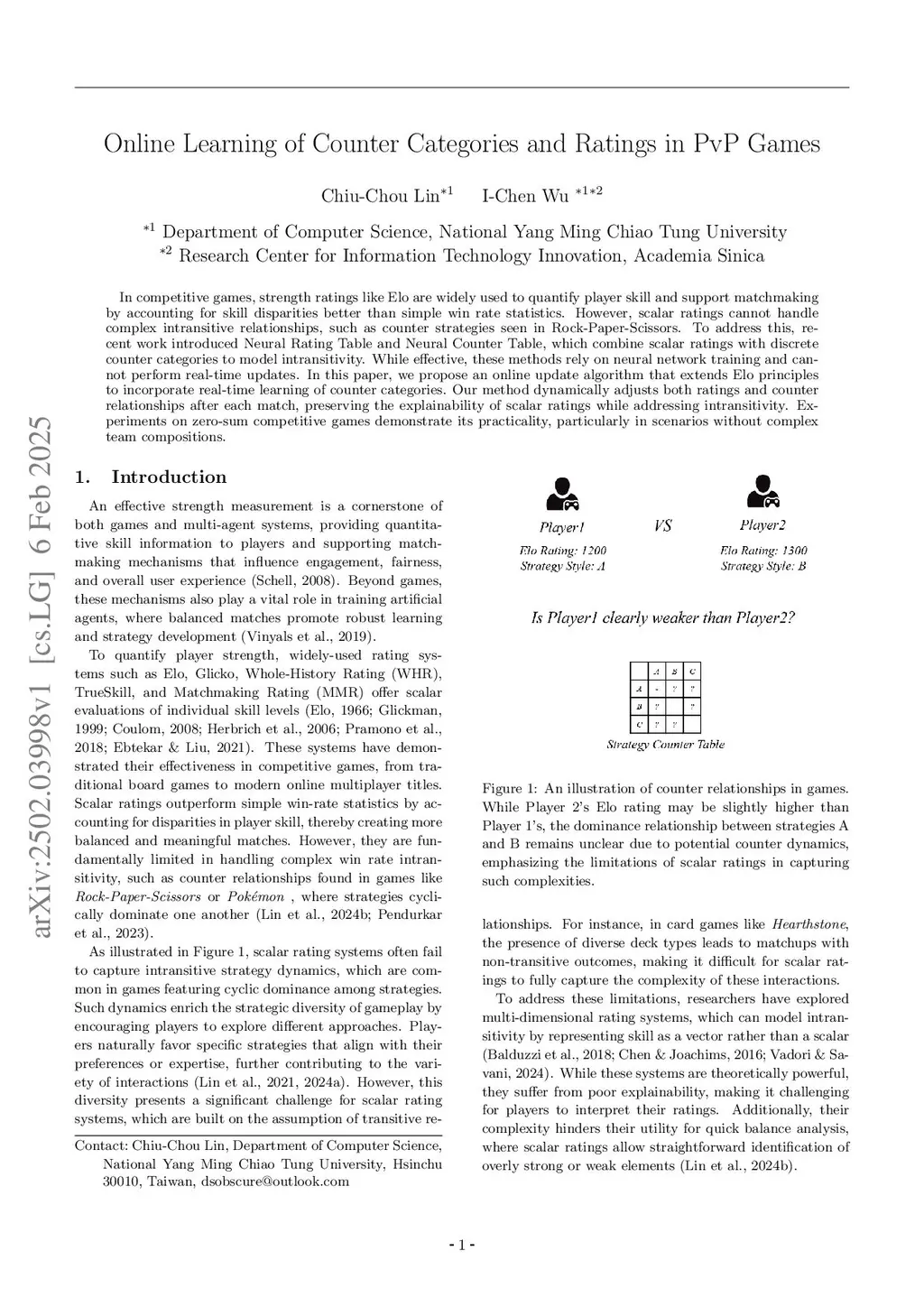 Online Learning of Counter Categories and Ratings in PvP Games