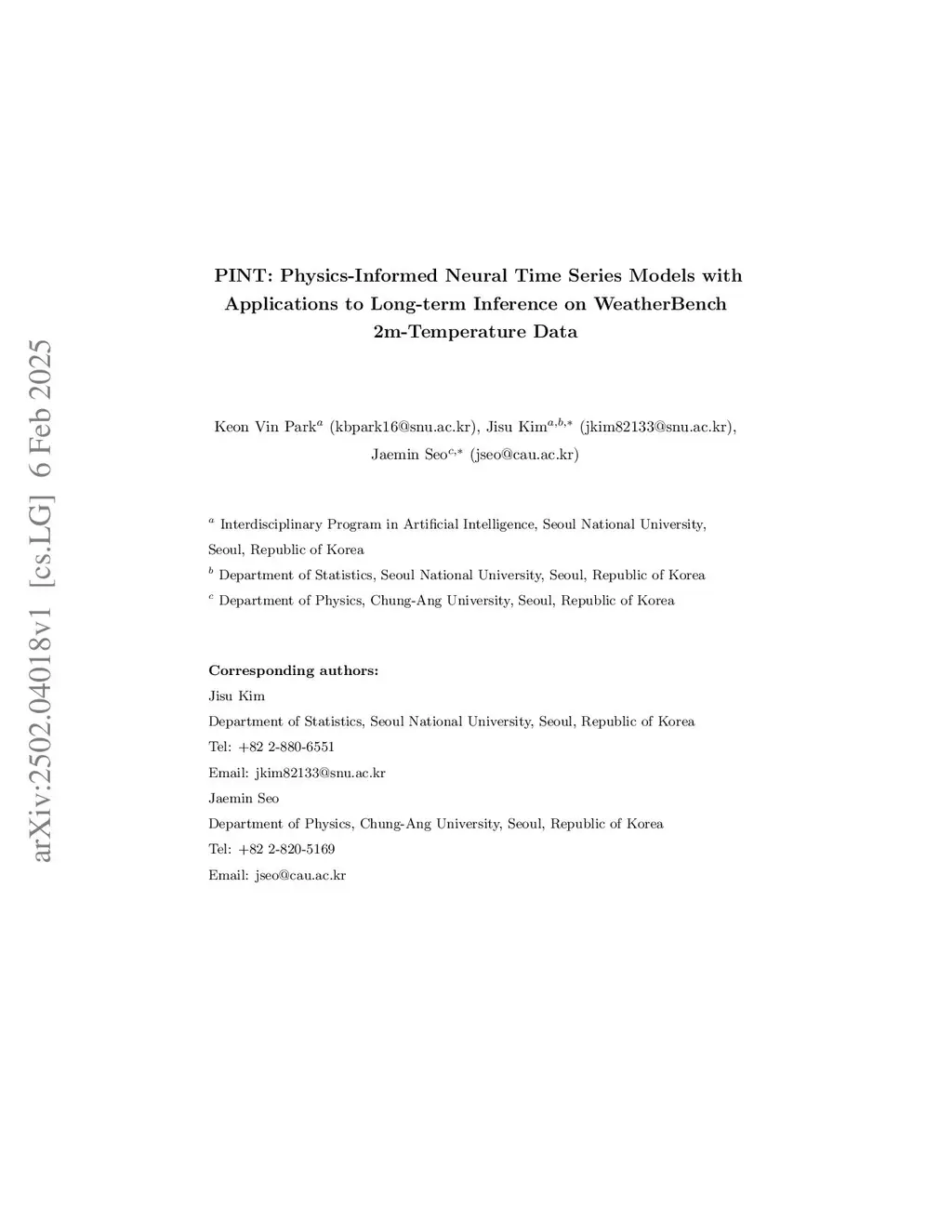 PINT: Physics-Informed Neural Time Series Models with Applications to Long-term Inference on WeatherBench 2m-Temperature Data