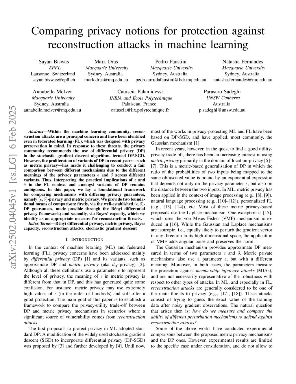 Within the machine learning community, reconstruction attacks are a principal concern and have been identified even in federated learning (FL), which was designed with privacy preservation in mind. In response to these threats, the privacy community recommends the use of differential privacy (DP) in the stochastic gradient descent algorithm, termed DP-SGD. However, the proliferation of variants of DP in recent years\textemdash such as metric privacy\textemdash has made it challenging to conduct a fair comparison between different mechanisms due to the different meanings of the privacy parameters and across different variants. Thus, interpreting the practical implications of and in the FL context and amongst variants of DP remains ambiguous. In this paper, we lay a foundational framework for comparing mechanisms with differing notions of privacy guarantees, namely -DP and metric privacy. We provide two foundational means of comparison: firstly, via the well-established -DP guarantees, made possible through the Rényi differential privacy framework; and secondly, via Bayes' capacity, which we identify as an appropriate measure for reconstruction threats.