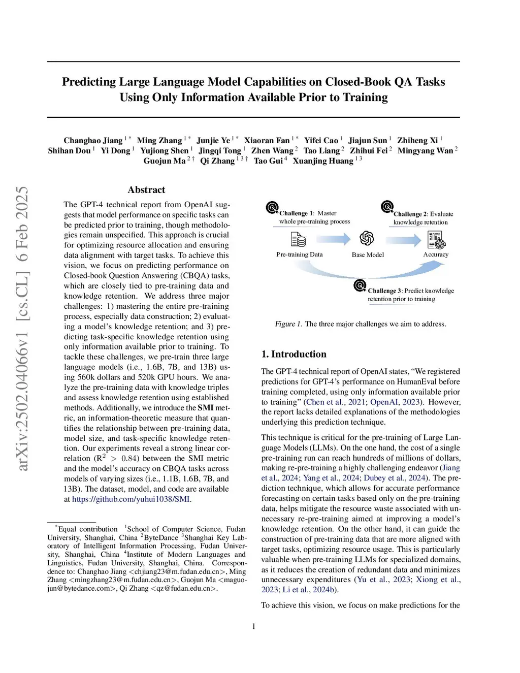 The GPT-4 technical report suggests that downstream performance can be predicted from pre-training signals, but offers little methodological detail on how to quantify this. This work address this gap by modeling knowledge retention, the capacity of a pre-trained language model to memorize factual information from its corpus, and introduce a principled method to estimate it prior to training. We propose Size-dependent Mutual Information (SMI), an information-theoretic predictor that integrates knowledge frequency, knowledge specificity, and model size to forecast closed-book question answering (QA) accuracy. SMI is validated through large-scale document retrieval over the disclosed pre-training corpora of 21 public and 3 custom models, combined with a robust multi-template QA evaluation. Experiments show that SMI significantly outperforms repetition-based baselines and achieves > 0.7 in predicting QA accuracy for models above 1B parameters, without additional training. The analysis further reveals diminishing returns from scaling data and model size and provides evidence for an intrinsic upper bound on knowledge retention achievable by pre-training alone, motivating retrieval and other augmentation strategies.
