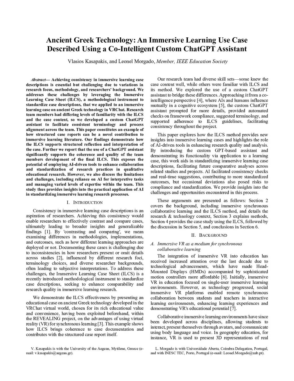 Ancient Greek Technology: An Immersive Learning Use Case Described Using a Co-Intelligent Custom ChatGPT Assistant
