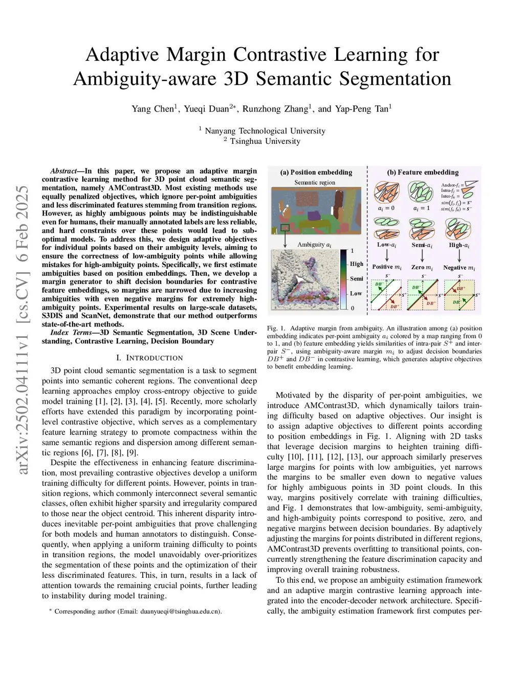 Adaptive Margin Contrastive Learning for Ambiguity-aware 3D Semantic Segmentation