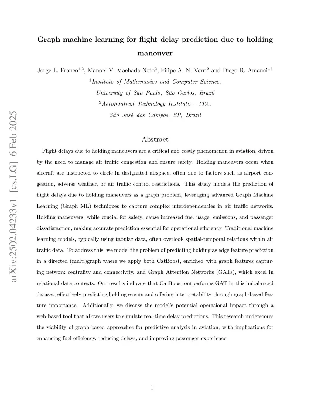 Graph machine learning for flight delay prediction due to holding manouver
