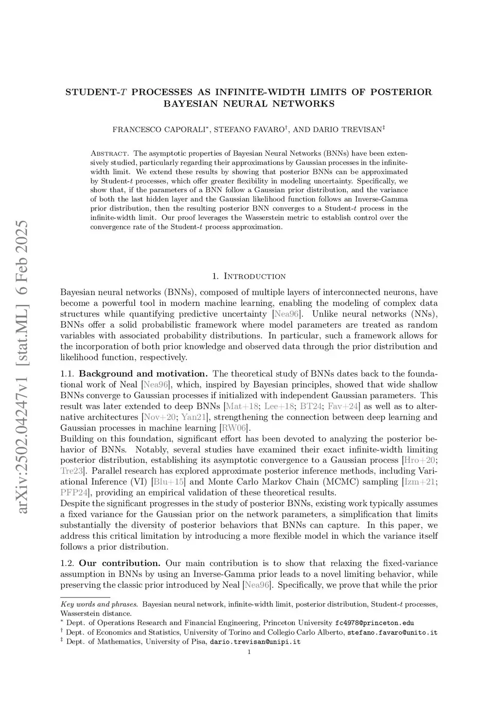 The asymptotic properties of Bayesian Neural Networks (BNNs) have been extensively studied, particularly regarding their approximations by Gaussian processes in the infinite-width limit. We extend these results by showing that posterior BNNs can be approximated by Student-t processes, which offer greater flexibility in modeling uncertainty. Specifically, we show that, if the parameters of a BNN follow a Gaussian prior distribution, and the variance of both the last hidden layer and the Gaussian likelihood function follows an Inverse-Gamma prior distribution, then the resulting posterior BNN converges to a Student-t process in the infinite-width limit. Our proof leverages the Wasserstein metric to establish control over the convergence rate of the Student-t process approximation.