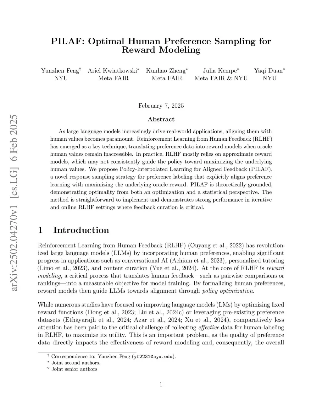PILAF: Optimal Human Preference Sampling for Reward Modeling