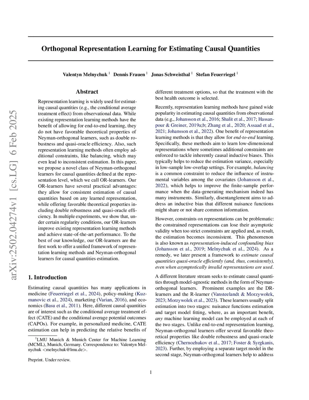 Orthogonal Representation Learning for Estimating Causal Quantities