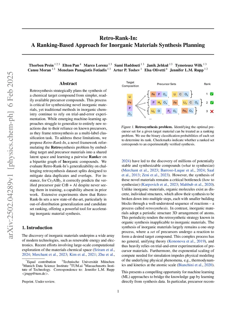 Retro-Rank-In: A Ranking-Based Approach for Inorganic Materials Synthesis Planning