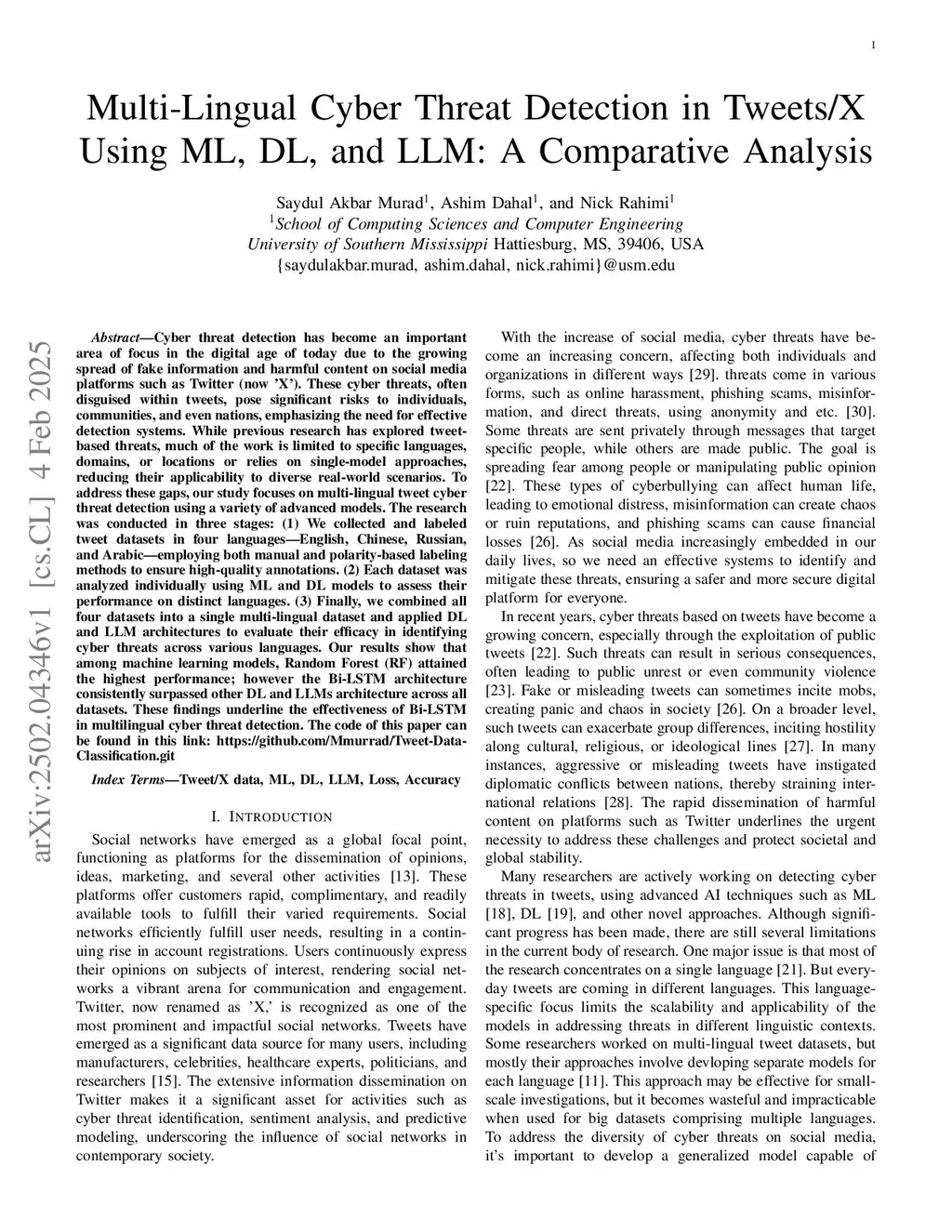 Multi-Lingual Cyber Threat Detection in Tweets/X Using ML, DL, and LLM: A Comparative Analysis