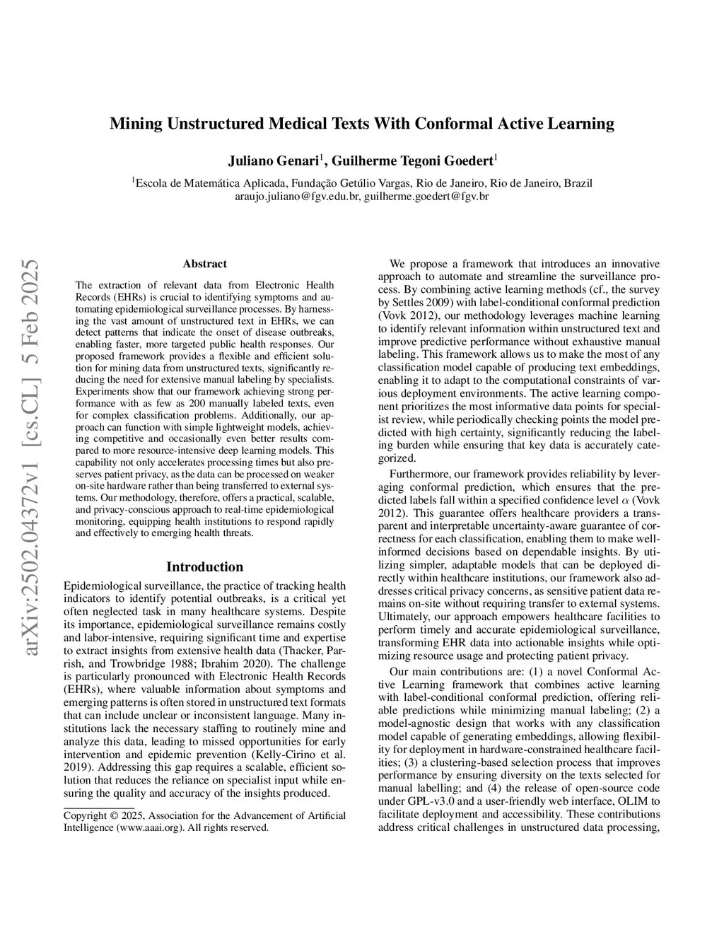 Mining Unstructured Medical Texts With Conformal Active Learning