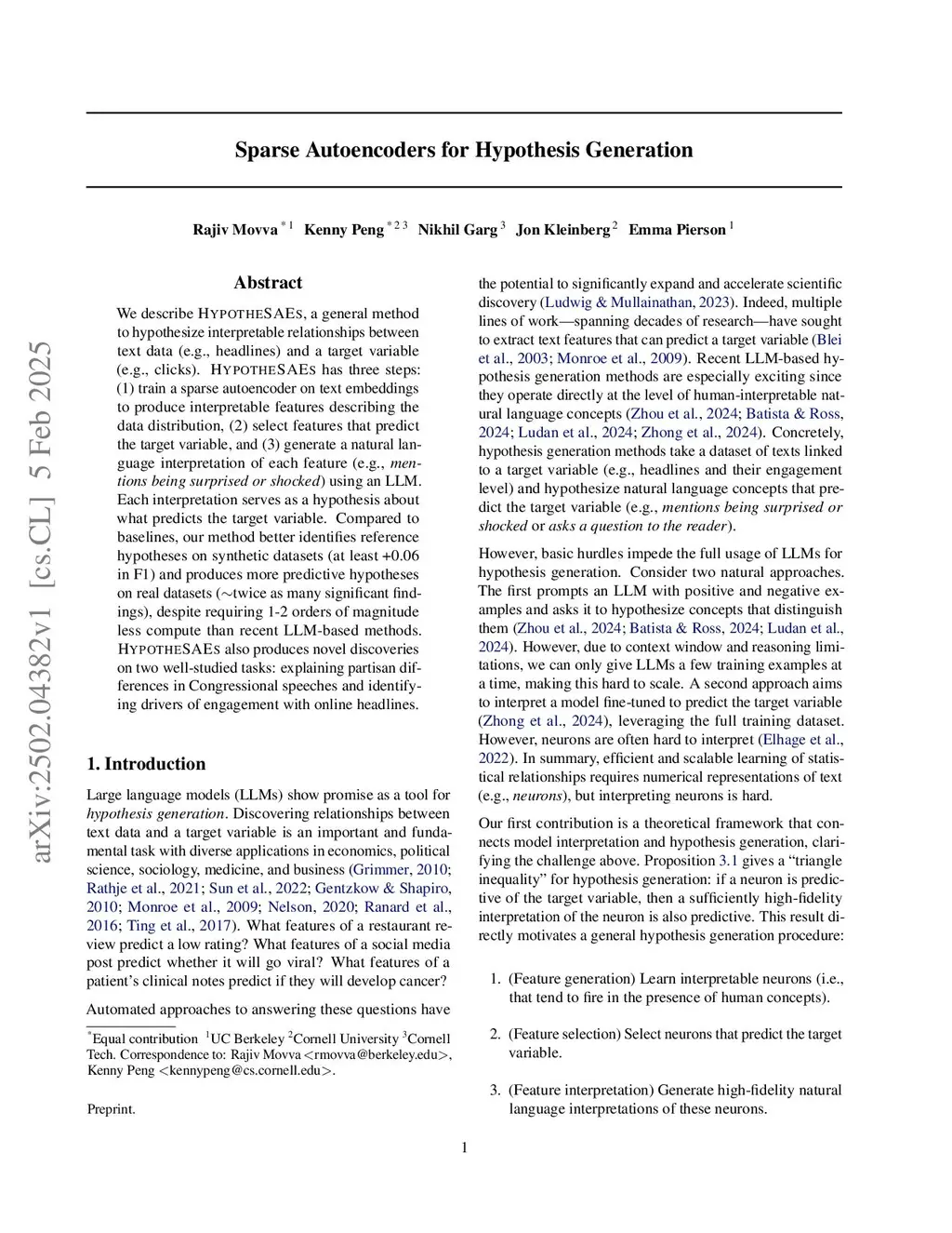 Sparse Autoencoders for Hypothesis Generation