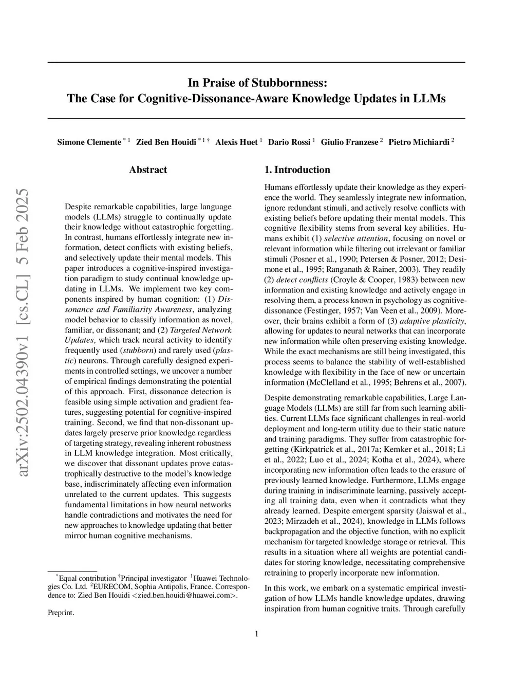 In Praise of Stubbornness: An Empirical Case for Cognitive-Dissonance Aware Continual Update of Knowledge in LLMs